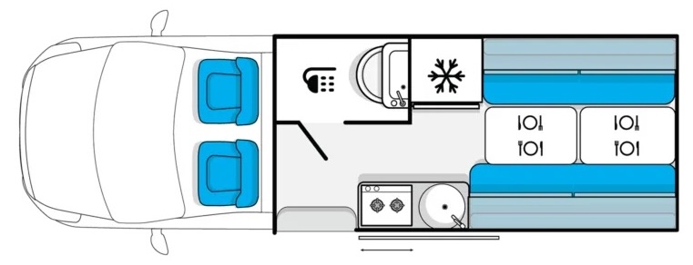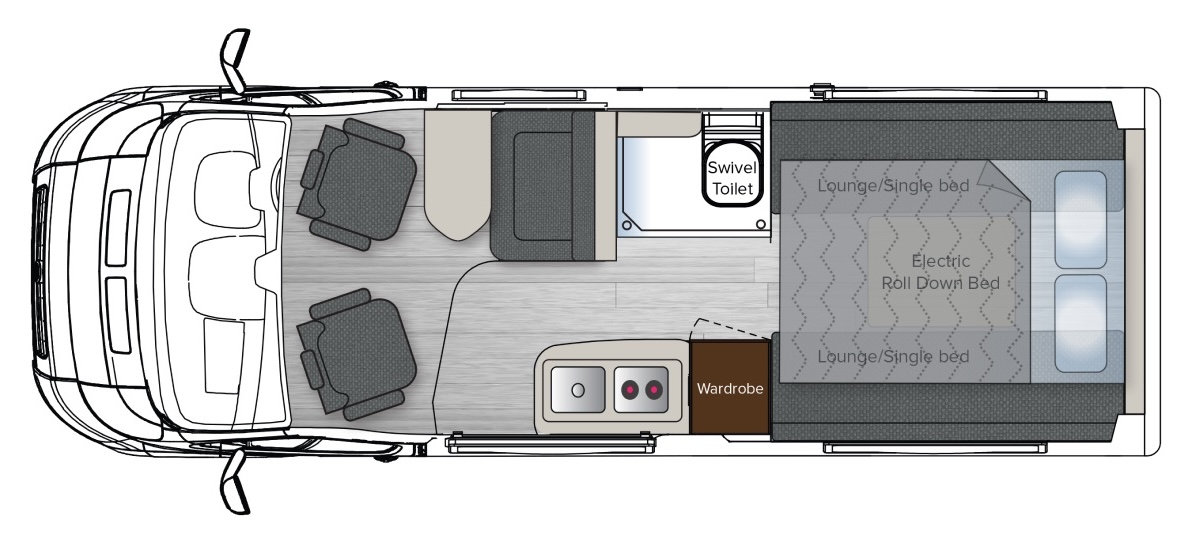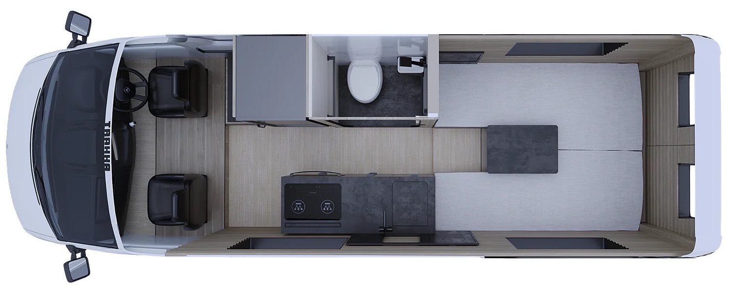 With 2 layout options (either an east/west double or two singles) this is a great couples van.