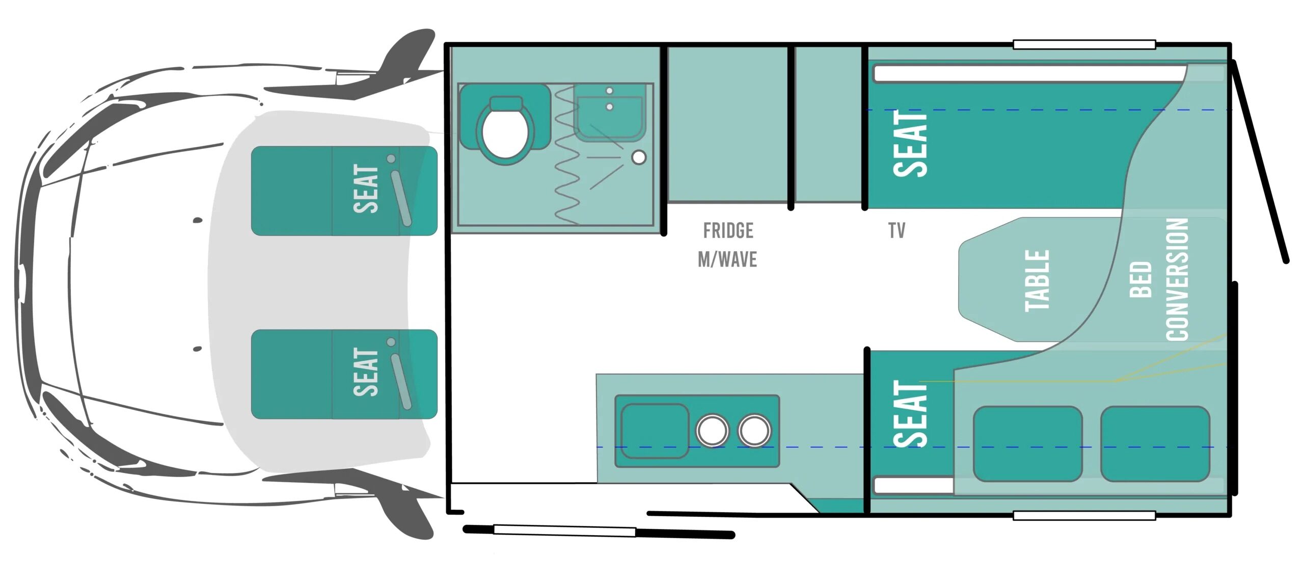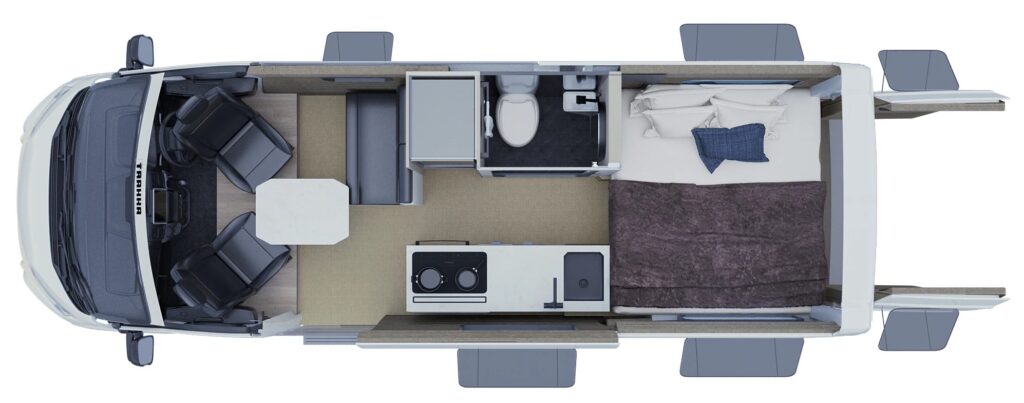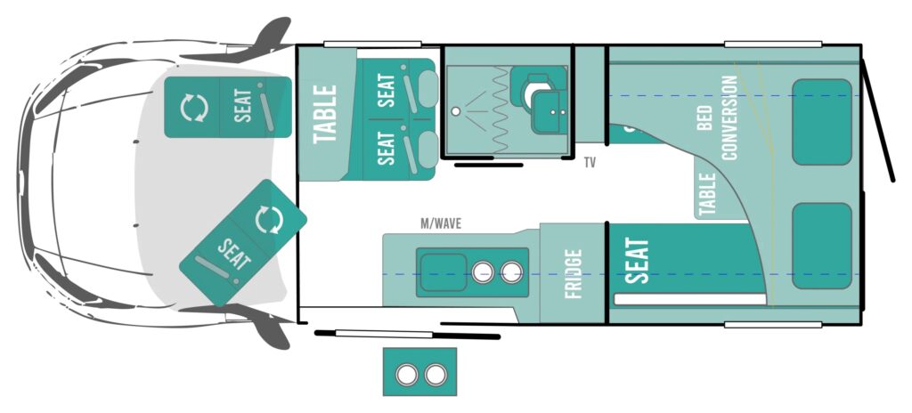 Floor plan of the brand new Trakka Akuna A2M van motorhome.